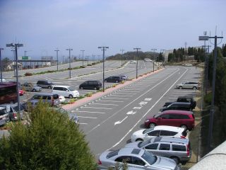 淡路ハイウェイオアシスの駐車場。WCは写真手前の方にあります。 |