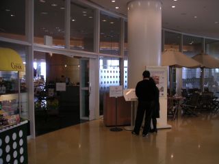 突き当たり左別室が会場です。案内にしたがってテーブルにお着きください。一般のお客様もいらっしゃる場合がありますのでご了承下さい。