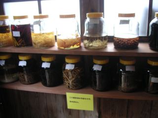 特別に作られたへちまのようなガラスケースに薬草が入れてあります。 |