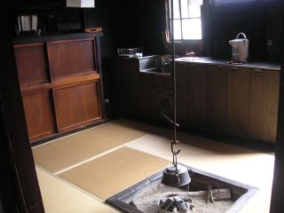 台所です。100年前から使われている囲炉裏がそのまま残っています。 |
