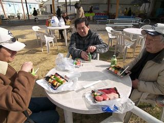 焼津さかなセンターは混雑のピークで駐車場を探すのに一苦労。でもすっかり暖かくなっていたのでアウトドアランチでも大丈夫でした。 |