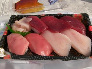 これがまたほっぺたがおちるほどおいしいマグロ寿司。ここで解散し、私はイカの塩辛とうなぎボーンを買ってさかなセンターを後にしました。 |