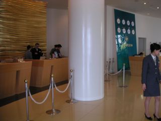 地下駐車場からエレベーターで2Fフロントへ行って下さい。ご宿泊の方はここでチェックイン。