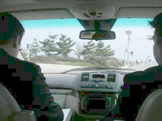 次に19日13:00からの会場となる、海岸南駐車場へ案内してもらいました。乗っている車はメルデセスのマルチパーパスビークル ヴィアノ。メルセデスの中でもこの車は初めて乗りました。静かで快適な乗り心地。
