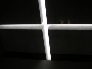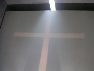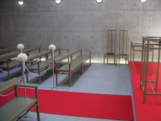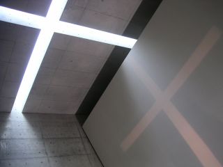 安藤氏の教会建築はいくつか見ていますが、どれも十字架に様々なアイデアを見ることが出来ます。この海の教会では、屋根のスリットからこぼれる光を壁面に映し出す仕掛けがなされていました。