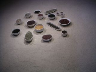 特別に作られたへちまのようなガラスケースに薬草が入れてあります。 |