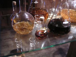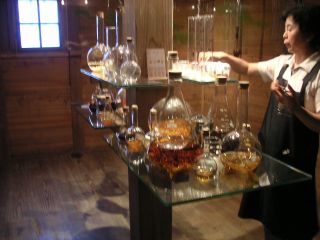 小さなビーカーをグラスにして2種類ほど試飲させていただきました。個性的な味わいです。 |