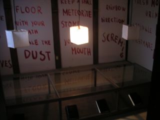 ここは「展示の為の部屋」。写真では見えませんが壁に書かれている詩の訳が書かれた小さな紙が貼られています。結構刺激的な内容です(^_^;) |